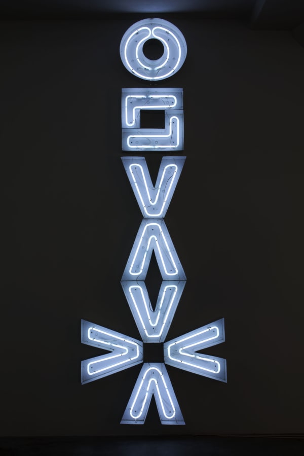 Jack Pierson was born in 1960 in Plymouth, Massachusetts, and graduated from the Massachusetts College of Art in Boston in 1984. He works in several different mediums, including photography, video and sculpture, and is well-known for his re-appropriation of commercial signage and large-scale vintage lettering, with which he creates evocative word-sculptures and installations. For this exhibition at Cheim & Read, Pierson presents recent sculptural abstractions using his trademark signage materials. He repositions letters and other signage details – broken pieces, numbers and symbols – so that narrative is no longer recognizable. By removing the hierarchy of language, and therefore its immediate associations, Pierson strives for universality – the sculptures do not rely on words to communicate, instead provoking a more visceral reaction.