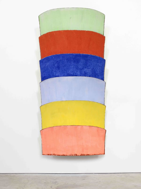 In his new work, Gorchov expands upon these longstanding concerns with deeply felt investigations into the color, scale, and surface of the distinctive forms he has been developing over the past four decades: the convex/concave canvases that are known as “shields” or “saddles,” and the climbing walls of color he builds from multiple paintings, or “stacks.”