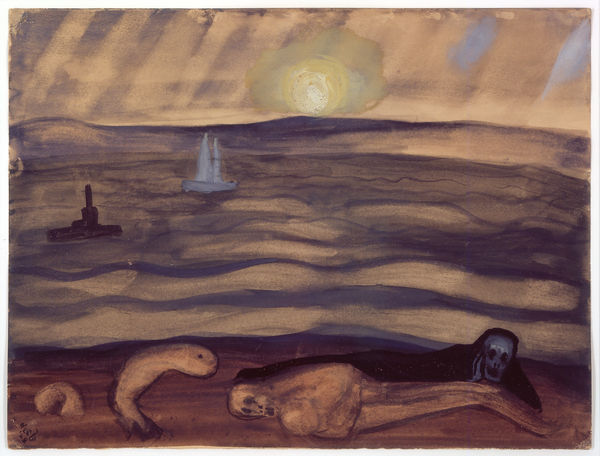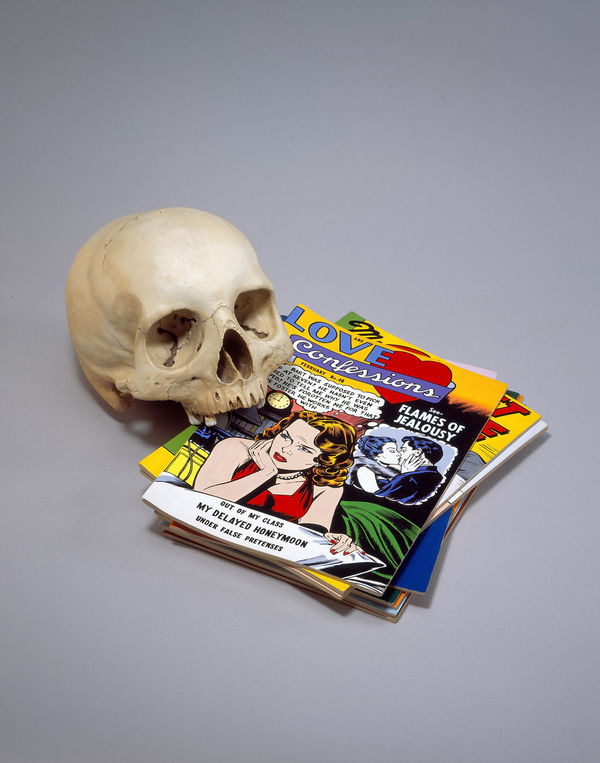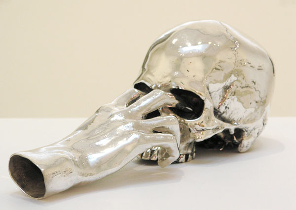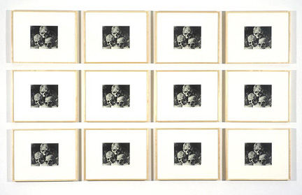 The skeleton finds its way into a hugely varied scope of artistic interpretation, from earlier allegorical explorations of Brueghel the Elder and the multi-leveled symbolism of Hans Holbein to the gothic meditations of the Symbolists and the masked identities of James Ensor, and to the more recent horror vacui of the Surrealist Salvador Dali and the grave solemnity of Pablo Picasso's reaction to war. Alice Neel's painting of a skull set on an empty table is like a contemporary vanitas; the skull provides an otherwise minimal environment with a sense of passing time. Adam Fuss's daguerreotype of a skull, eerily beautiful, exploits the medium's metallic surface, so that the viewer's face is reflected within. The tactile surfaces of Donald Baechler's skull paintings belie the repetition of the immaterial subject, and Wim Delvoye explores the taboo, with a nod to modern science, in his erotic "x-rays" of misbehaving skeletons. The wide breadth of work in the show incorporates varied approaches to the subject, from the cynical, clever and perverse to the horrific, haunting and somber. It is an apt subject for our current condition. -