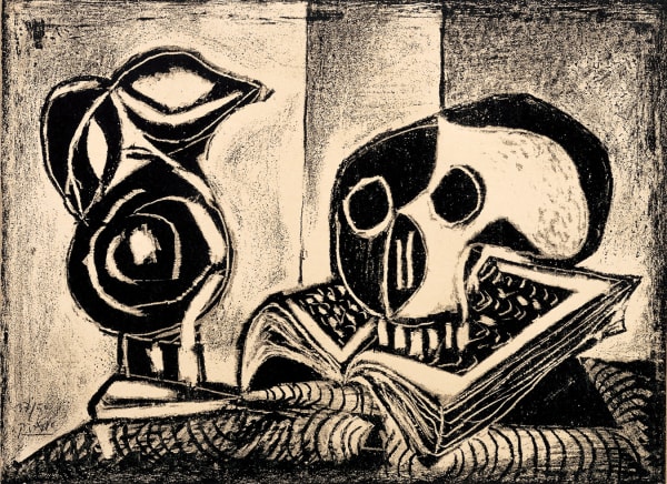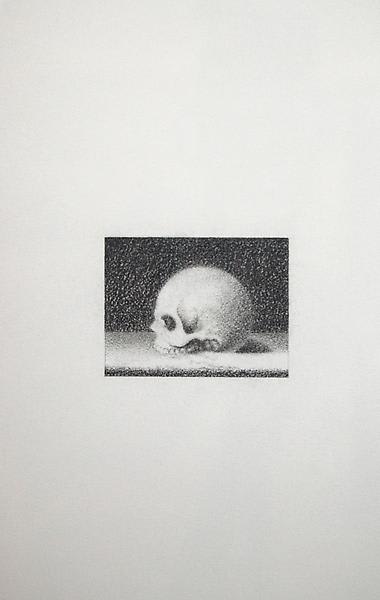 The skeleton finds its way into a hugely varied scope of artistic interpretation, from earlier allegorical explorations of Brueghel the Elder and the multi-leveled symbolism of Hans Holbein to the gothic meditations of the Symbolists and the masked identities of James Ensor, and to the more recent horror vacui of the Surrealist Salvador Dali and the grave solemnity of Pablo Picasso's reaction to war. Alice Neel's painting of a skull set on an empty table is like a contemporary vanitas; the skull provides an otherwise minimal environment with a sense of passing time. Adam Fuss's daguerreotype of a skull, eerily beautiful, exploits the medium's metallic surface, so that the viewer's face is reflected within. The tactile surfaces of Donald Baechler's skull paintings belie the repetition of the immaterial subject, and Wim Delvoye explores the taboo, with a nod to modern science, in his erotic "x-rays" of misbehaving skeletons. The wide breadth of work in the show incorporates varied approaches to the subject, from the cynical, clever and perverse to the horrific, haunting and somber. It is an apt subject for our current condition. -