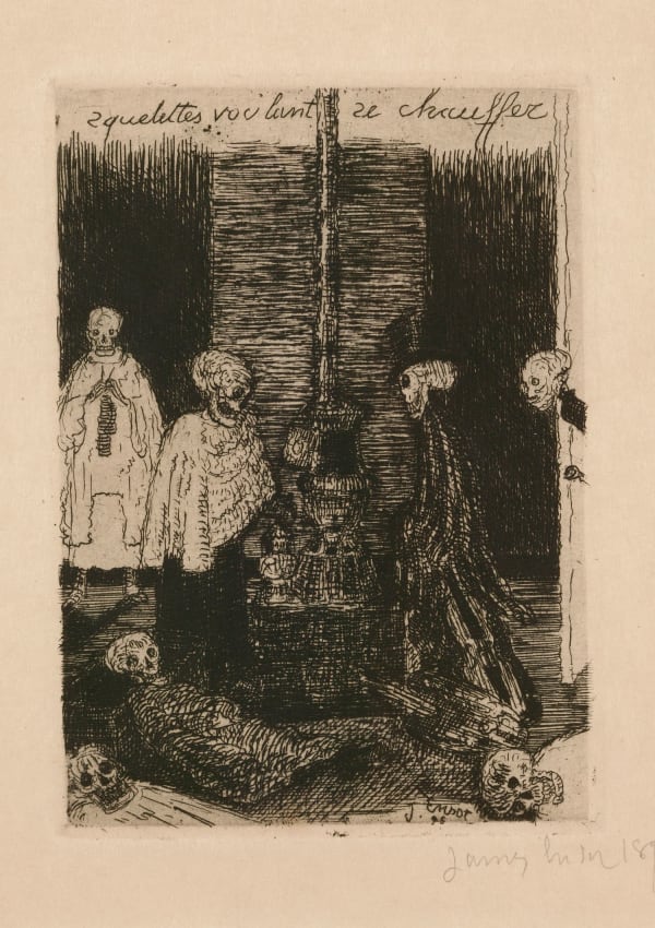 OverviewCheim & Read is pleased to announce I Am As You Will Be, a group exhibition of more than thirty works which incorporate the skeleton as subject. Curated in part by the James Ensor scholar Xavier Tricot, the wide range of artists include Francis Alÿs, Donald Baechler, Matthew Barney, Jean-Michel Basquiat, Lynda Benglis, Michaël Borremans, Louise Bourgeois, Marcel Broodthaers, Salvador Dali, Paul Delvaux, Wim Delvoye, Marlene Dumas, James Ensor, Jan Fabre, Roland Flexner, Katharina Fritsch, Adam Fuss, Damien Hirst, Jenny Holzer, Jannis Kounellis, Sherrie Levine, Tony Matelli, McDermott & McGough, Robert Morris, Alice Neel, Pablo Picasso, Jack Pierson, Lady Pink, Sigmar Polke, Félicien Rops, Luc Tuymans, Jan van Oost, and Andy Warhol. A full color catalogue will accompany the exhibition, and includes an essay written for the show by Mr. Tricot.