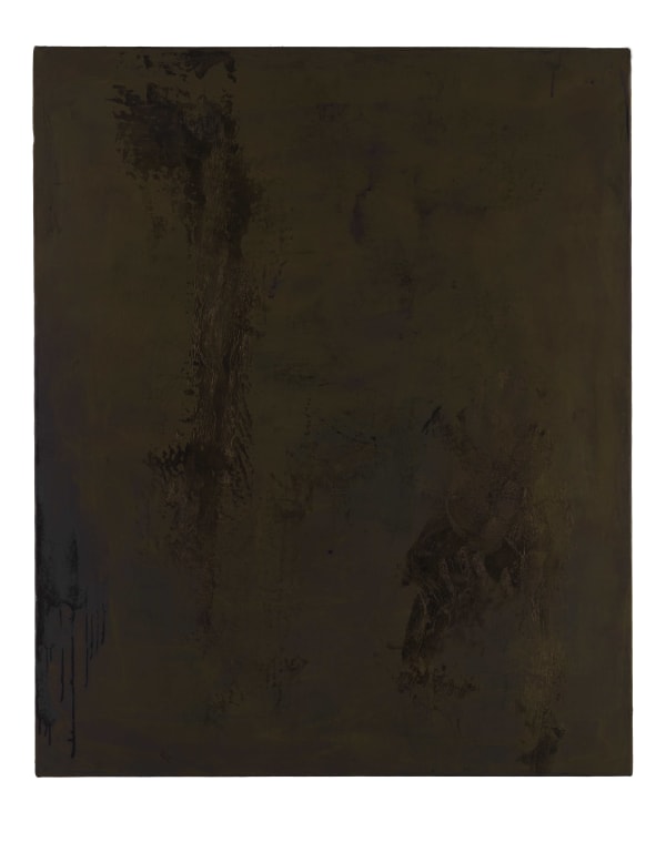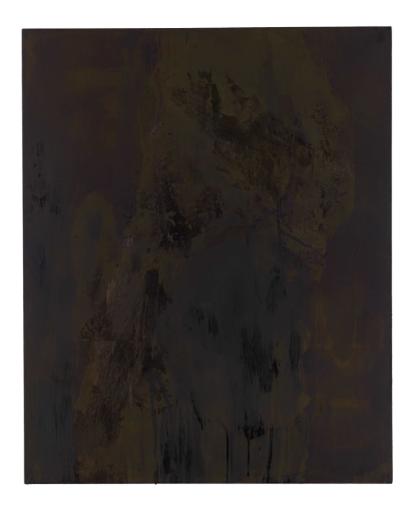Jensen, whose attention to materials is widely known, makes his own highly saturated paint, which he applies with mason’s trowels to achieve lustrous, burnished surfaces. The darkly enigmatic works resulting from this often lengthy yet fully spontaneous process have been described by Martha Schwendener in The New York Times as resembling “slabs of oxidized steel.”