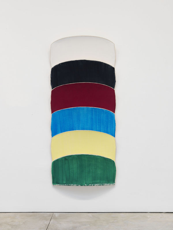 The nuances generated by Gorchov’s concave and convex forms, his surface’s sensual touch, and his restrained composition work in concert to elucidate the viewing experience. For example, the stretched linen attached by exposed staples, which tenuously wraps around the frame’s edge draws attention to the tension between surface and structure. Furthermore, it persuades the viewer to peer around and inspect the back of the frame. This invites a comparison between the rawness and angularity of the wood structures held together by fasteners and the feebleness of the images unified by painterly strokes and drips of vivid washes. With assured wit and mediation, Gorchov embraces the undefined, either formally or intuitively his approach that allows for constant shifts in the orientation and dimension of the canvases. But by using contrasting elements to both complement and question each other, Gorchov reaches equilibrium with aplomb.