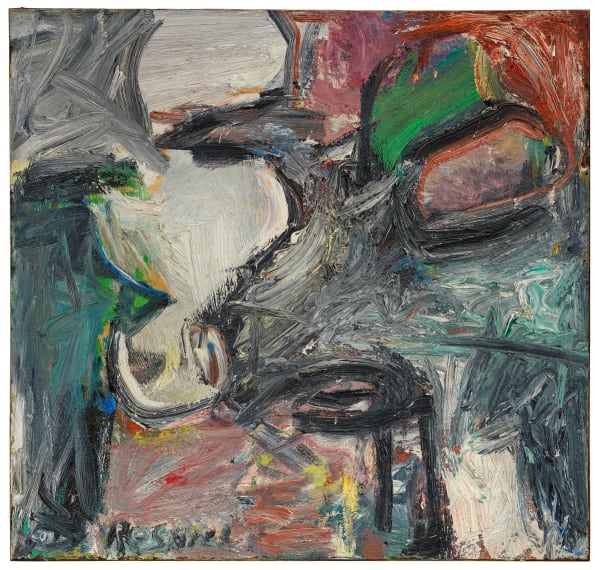 Despite their density and heaviness, these powerful forms seem to float freely across the surface, simultaneously solid and open. There is a sense of catharsis here, coursing through the artist’s brushwork. Shortly after this period, Resnick’s paintings would open up completely into the fields of paint that occupied him for the next three decades, as we see in examples such as Burning Bush, 1959, in the collection of the Museum of Modern Art in New York.